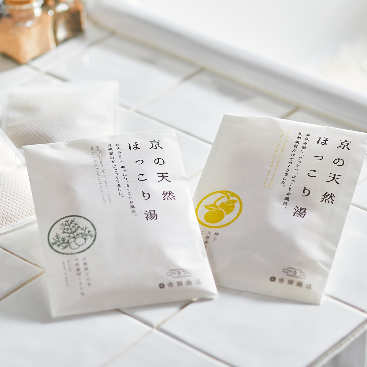 京の天然ほっこり湯は、植物原料100%ならではのやさしい香りにこだわった揉み出し式の無添加入浴剤です。